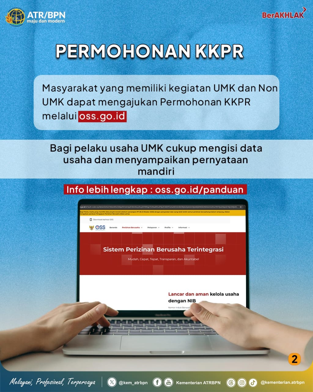 Pemerintah melalui Kementerian ATR/BPN juga memberikan kemudahan dalam pengajuan KKPR melalui sistem Online Single Submission (OSS).