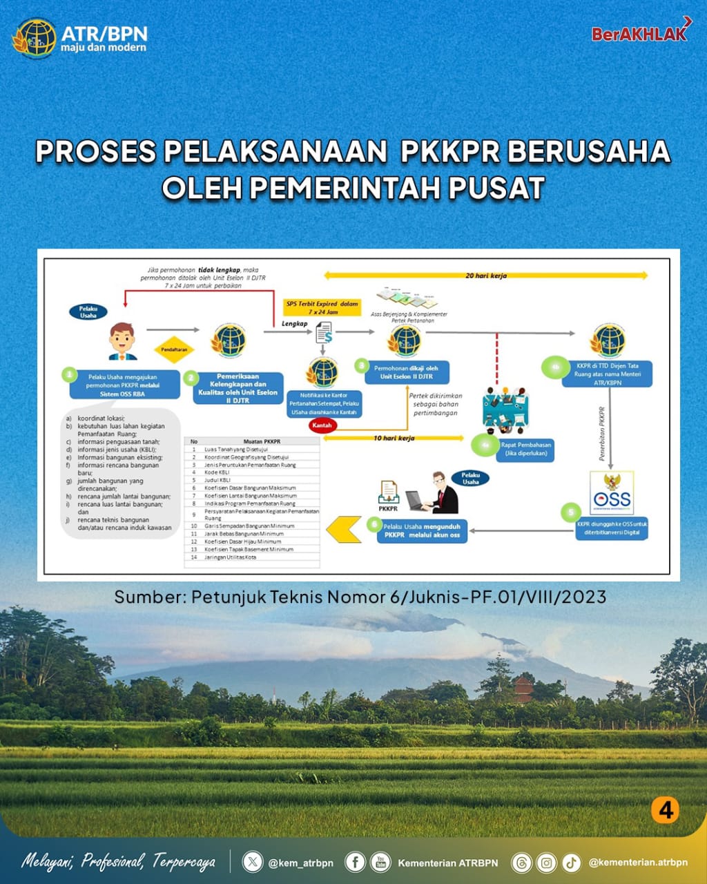 “Pemerintah melalui Kementerian ATR/BPN memberikan kemudahan bagi pelaku usaha dalam penyederhanaan perizinan kegiatan berusaha dalam layanan KKPR yang dapat dimohonkan melalui sistem Online Single Submission (OSS),” lanjut keterangan tersebut.