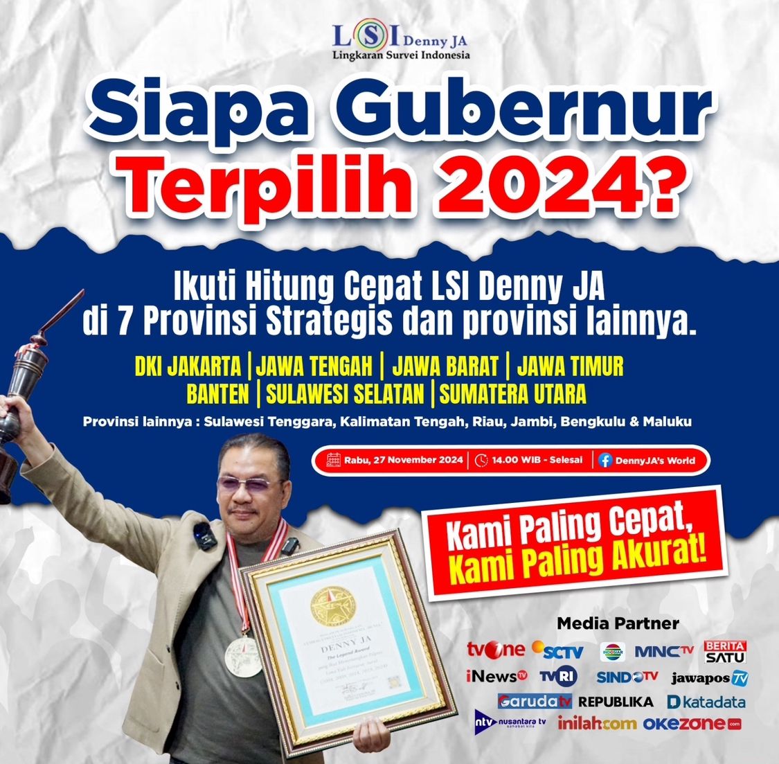 Pertanyaan-pertanyaan ini segera terjawab melalui Quick Count LSI Denny JA pada hari Rabu, 27 November 2024.