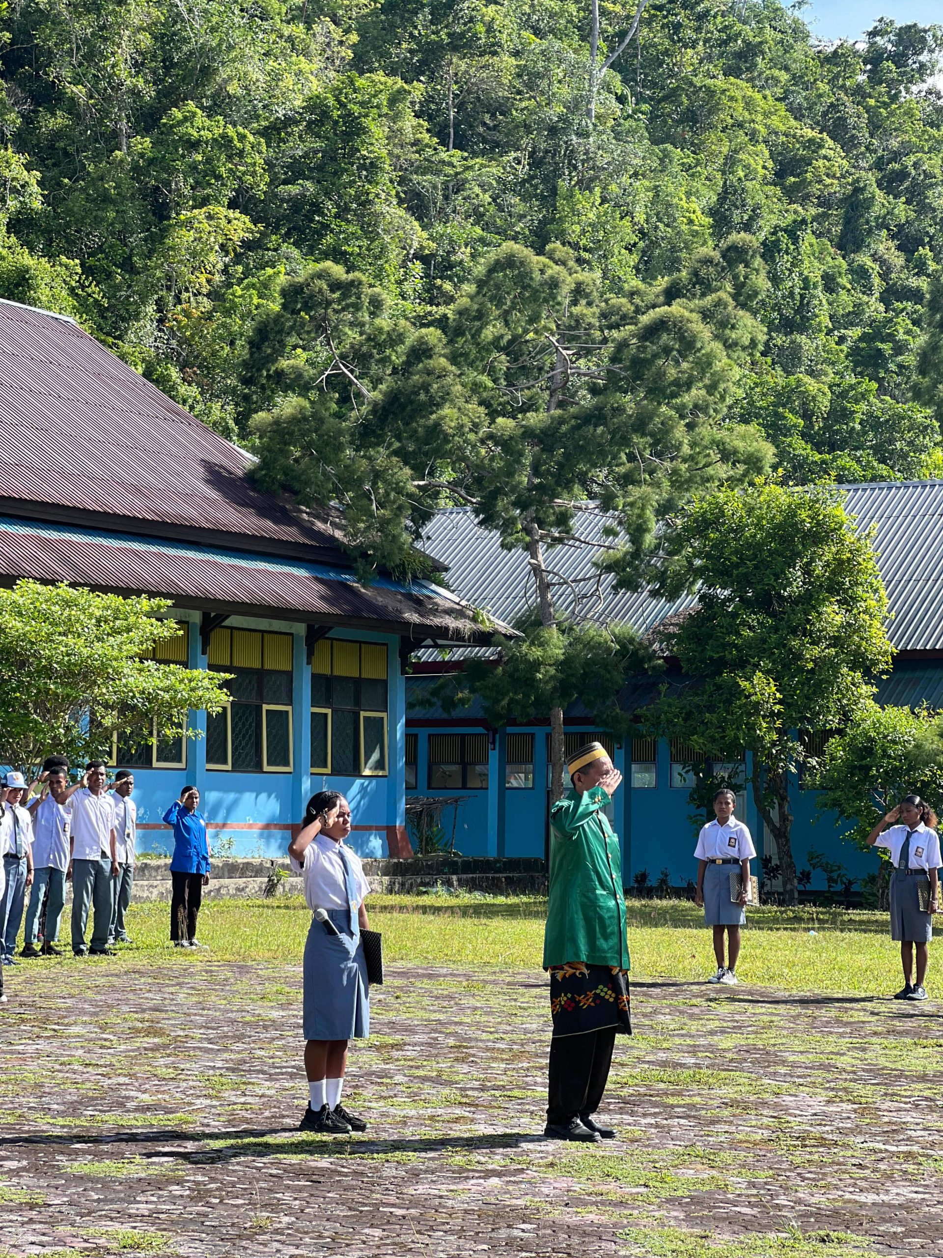SMK Negeri 1 Pariwisata Biak menyelenggarakan upacara dengan penuh semangat dan antusiasme. Para siswa mengenakan pakaian seragam yang rapi, sementara para guru dan tenaga kependidikan yang mengenakan pakaian adat dari masing-masing daerah juga tampak mengikuti acara dengan penuh khidmat. Upacara bendera ini bukan hanya sekadar seremonial, tetapi menjadi momen yang berarti bagi seluruh civitas akademika di SMK Negeri 1 Pariwisata Biak.