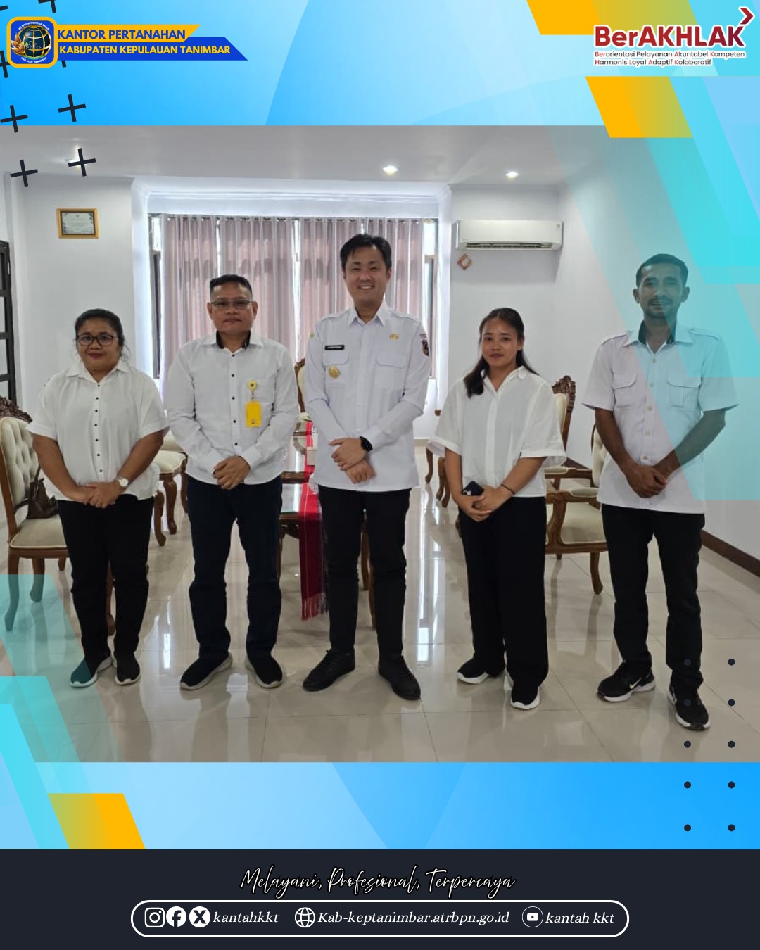 http://suaraanaknegerinews.com | Kantor Pertanahan Kabupaten Kepulauan Tanimbar melakukan kunjungan silaturahmi dan koordinasi dengan Bupati Kepulauan Tanimbar guna memperkuat sinergi pelaksanaan program pertanahan, Selasa (22/4/2026).