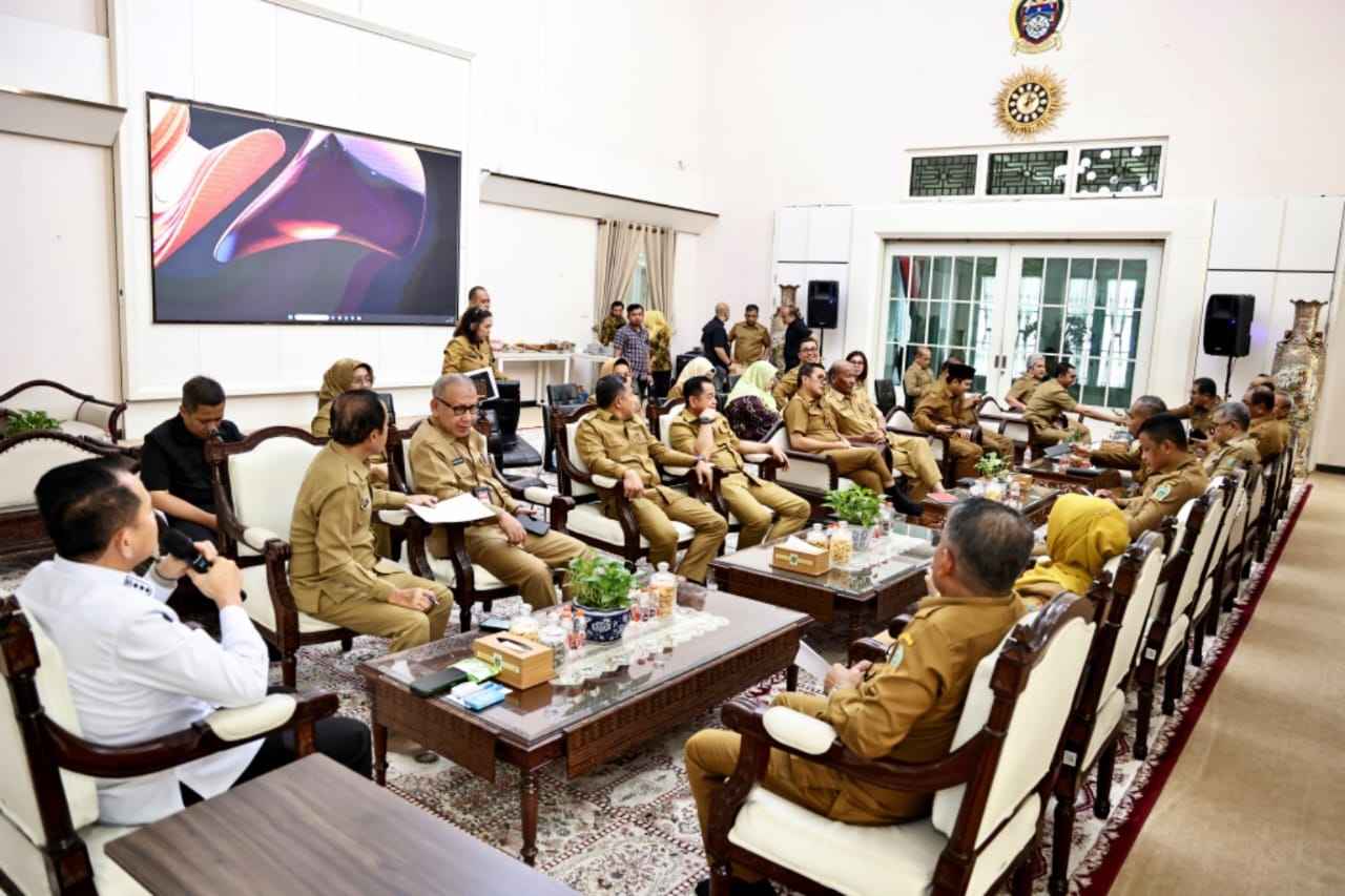 FOTO : Penjabat (Pj) Gubernur Sumatera Utara (Sumut) Agus Fatoni memimpin rapat bersama para Kepala Organisasi Perangkat Daerah (OPD) di Rumah Dinas Gubernur, Jalan Sudirman, Medan